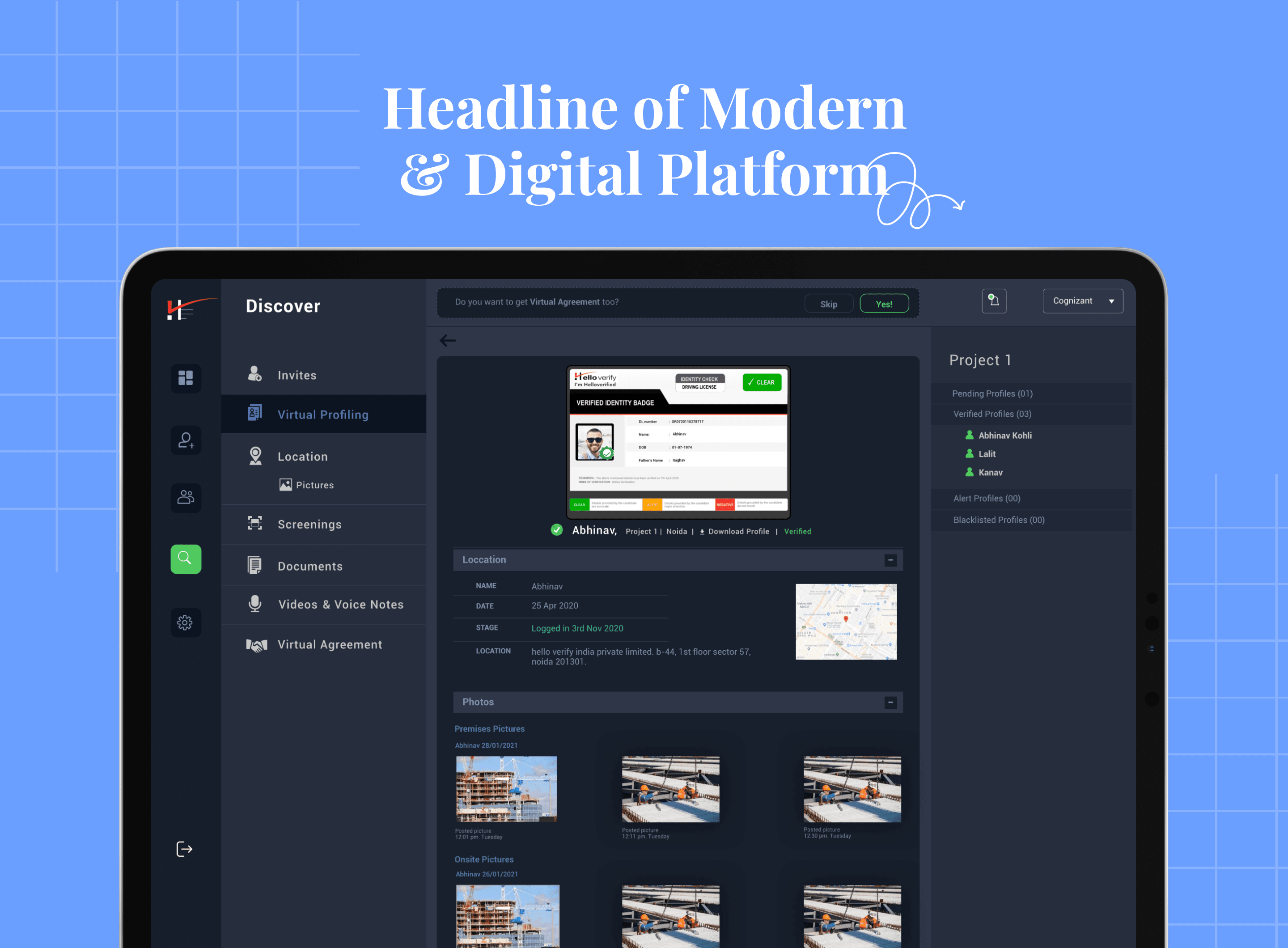 The solution featured a robust array of screenings, encompassing personal identifications, criminal background checks, company background checks, and virtual profiling. The user-friendly platform allowed companies to create multiple projects, upload data, and invite vendors and staff for screenings. Users could conveniently update and upload their details post-registration.